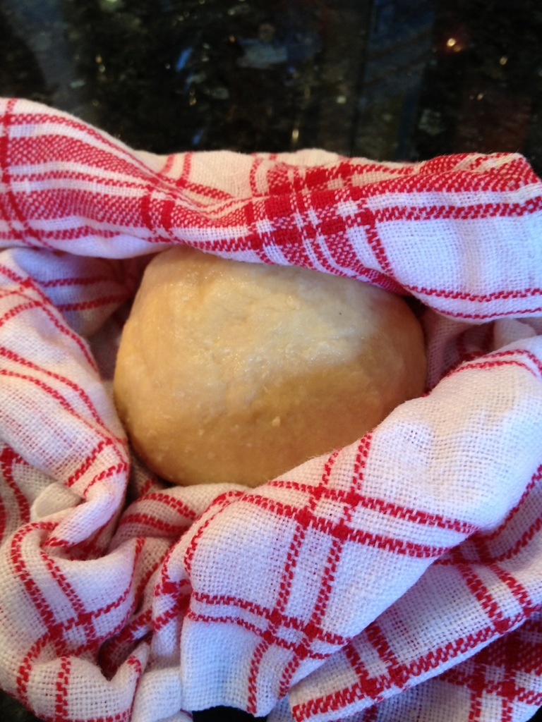 När allting är blandat och det börjar likna en deg är det dags att börja knåda. Degen är superkladdig, så ha gott om mjöl till hands. Knåda degen och blanda i mer mjöl tills du kan forma en boll, den mesta degen lossnar från dina händer och bollen fortfarande är så klibbigt att den hänger kvar någon sekund i din hand efter att du släppt bollen.Vira in bollen i en fuktig kökshandduk och låt den vila minst 30 minuter (men upp till 2 timmar på vinter).