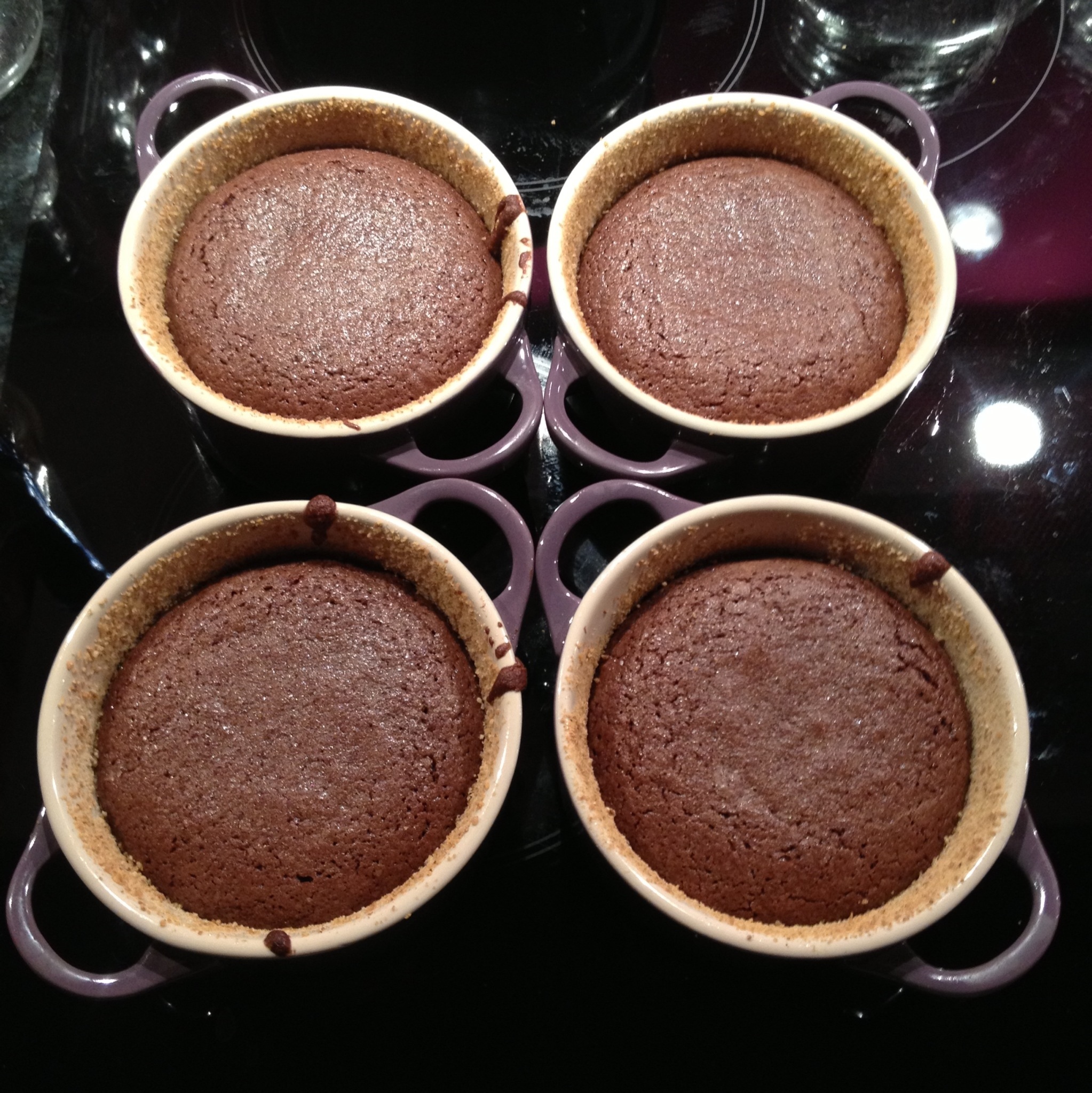 Grädda kakan i 10-20 minuter beroende på hur kladdig du vill ha den och vad du använt för form. 4 ganska stora portionsformar behöver t.ex. 20 minuter medan det räcker med 10 minuter i en större form.